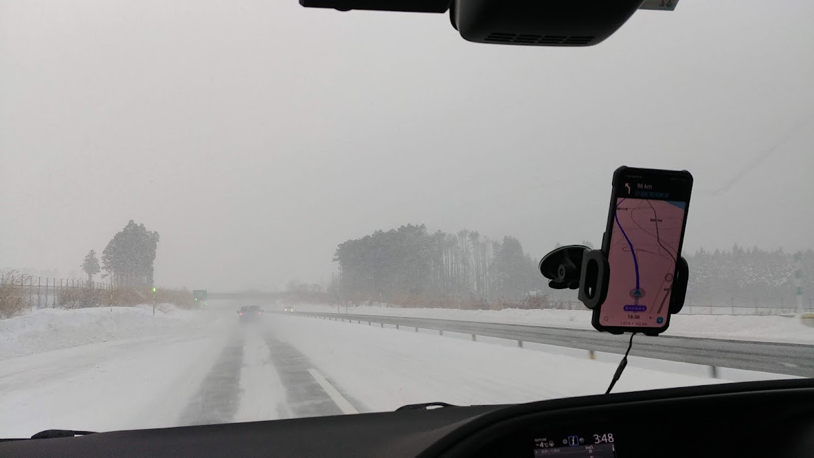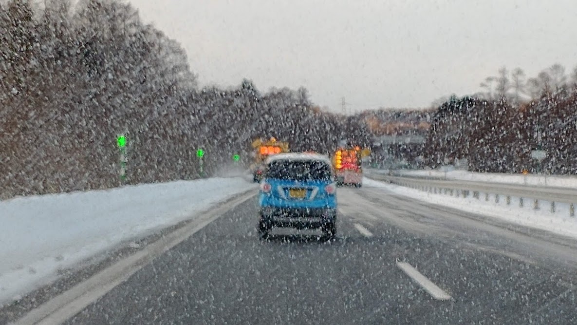 沿途風雪很大,中途有雪有太陽,天光走行不會太難行,11點未夠出發,1點多到達 八雲 PA,買點小食休息。